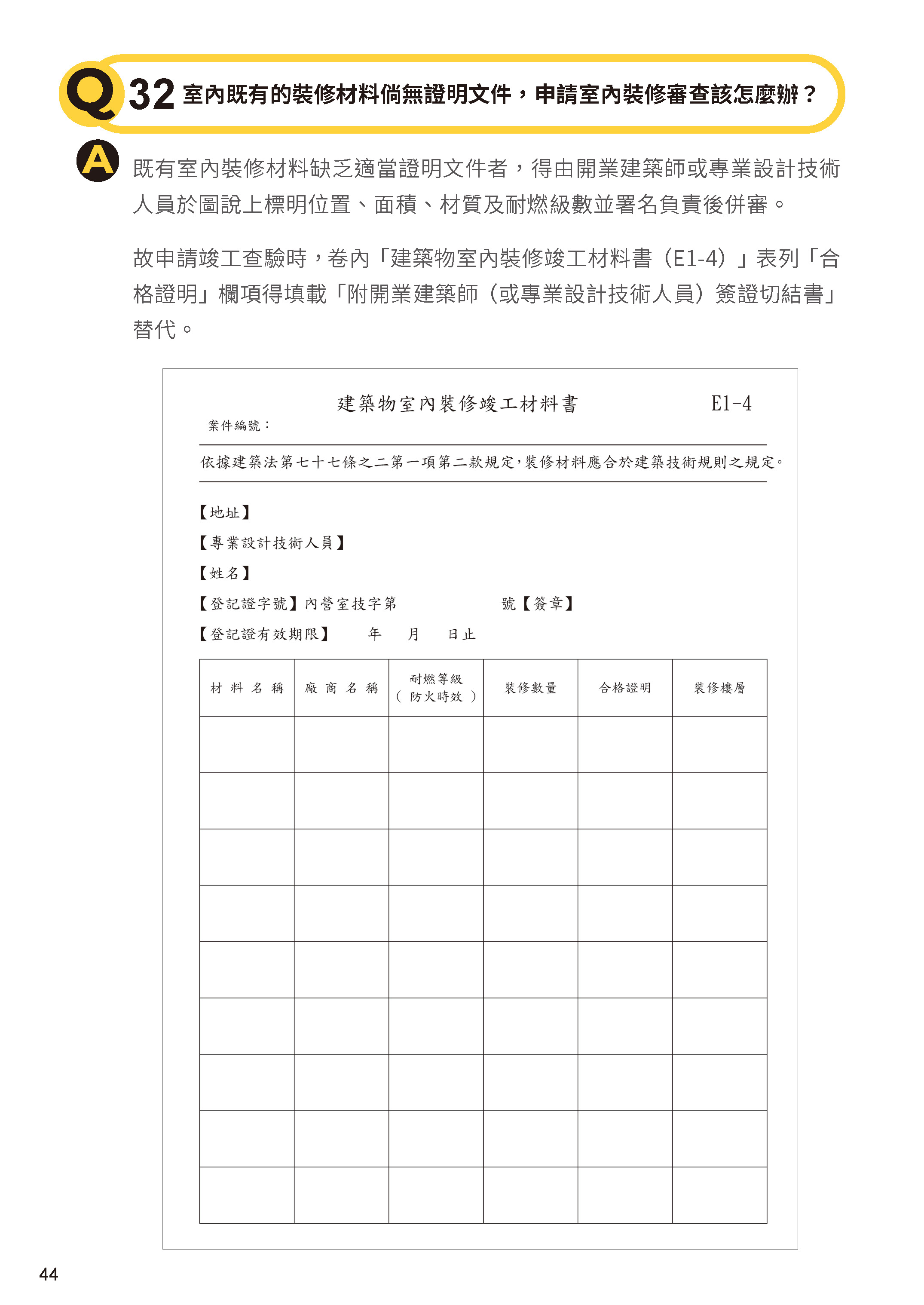 室內既有的裝修材料倘無證明文件,申請室內裝修審查該怎麼辦?