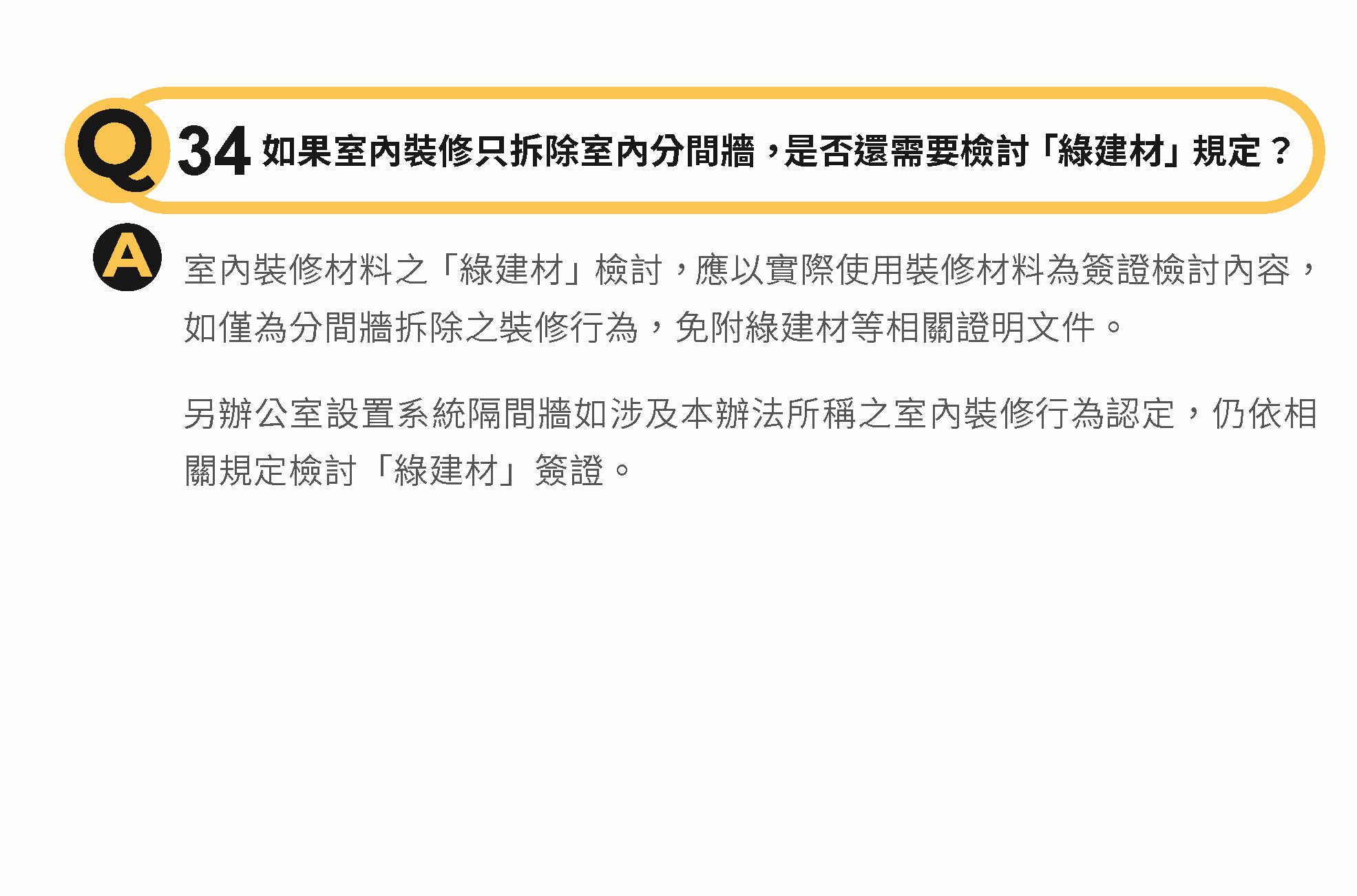 如果室內裝修只拆除室內分間牆,是否還需要檢討「綠建材」規定?