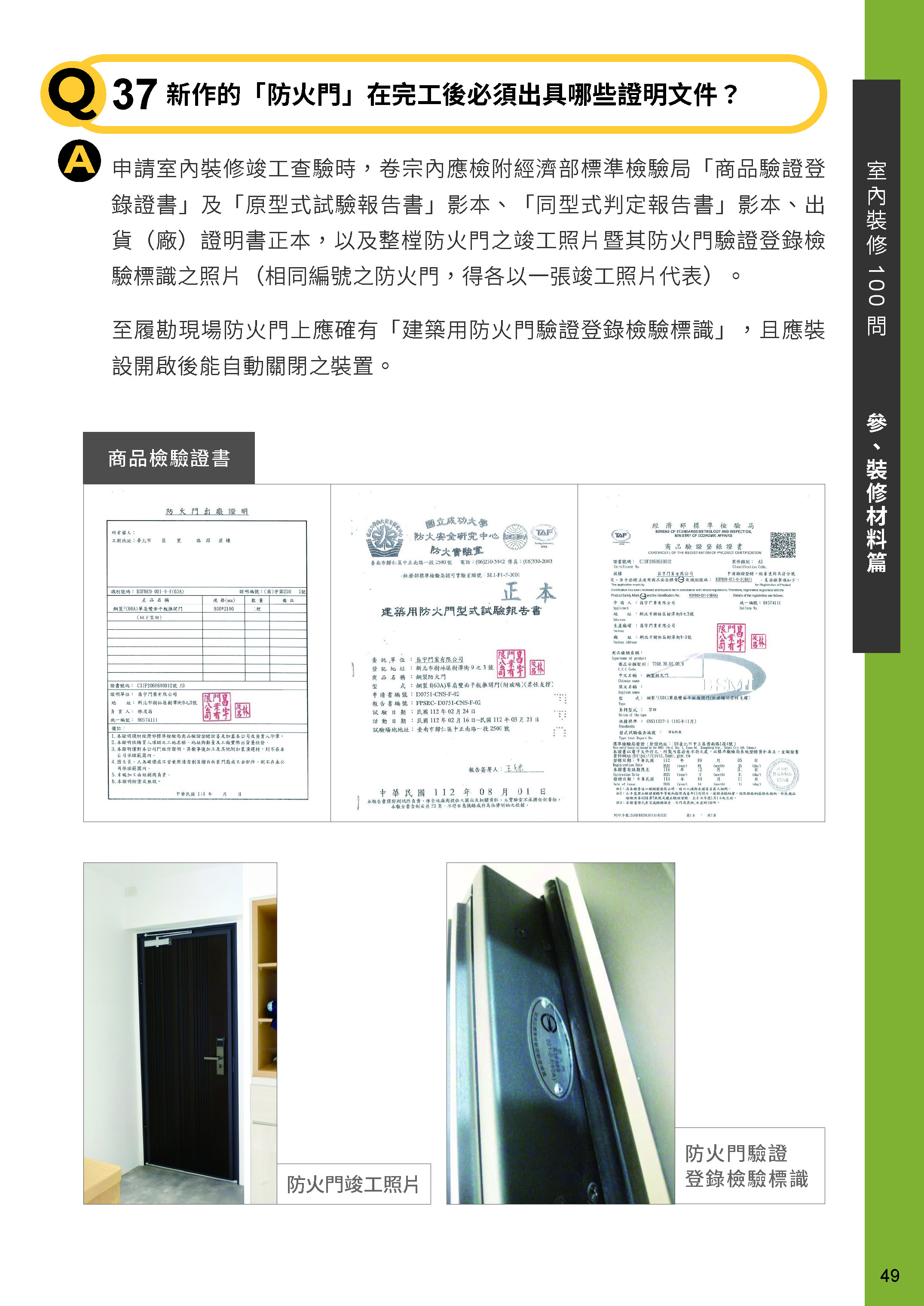 新作的「防火門」在完工後必須出具哪些證明文件?